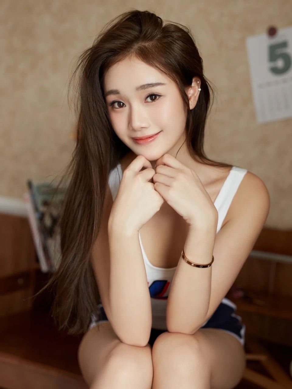 邻家女孩吊带短裤香肩美腿清纯动人写真