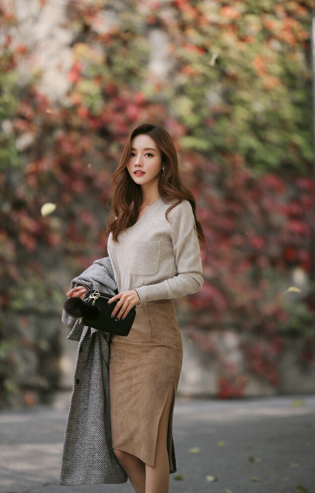 瓜子脸美女嫩模大波浪卷发性感迷人街拍写真