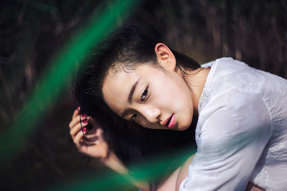 森系少女粉色吊带格裙优雅迷人唯美写真