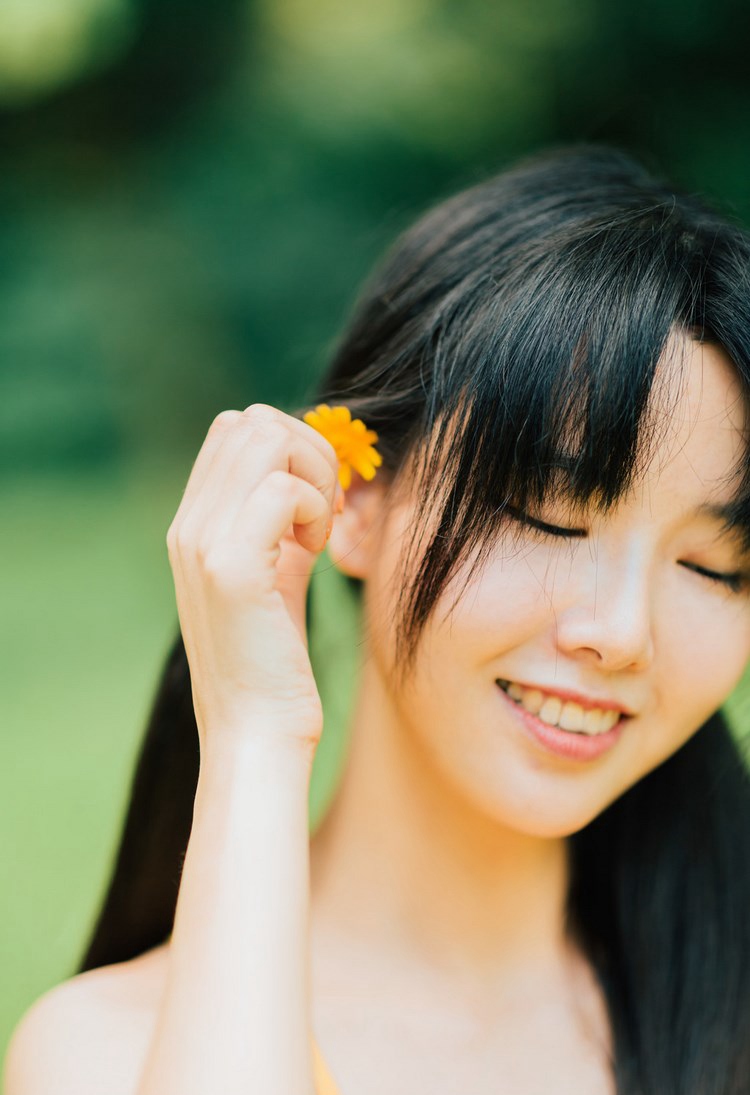 阳光下的短发美眉漂亮脸蛋精致侧颜户外写真