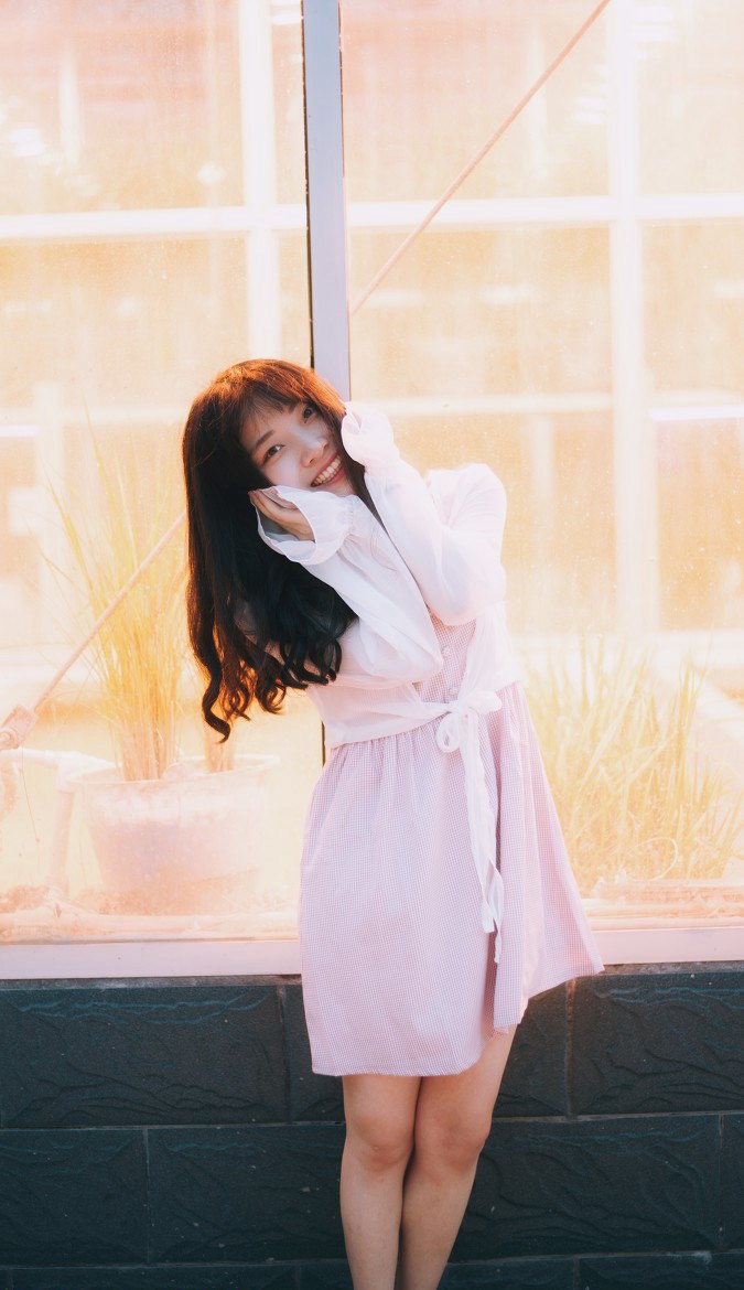 长腿美眉吊带睡裙白嫩肌肤苗条身材私房写真