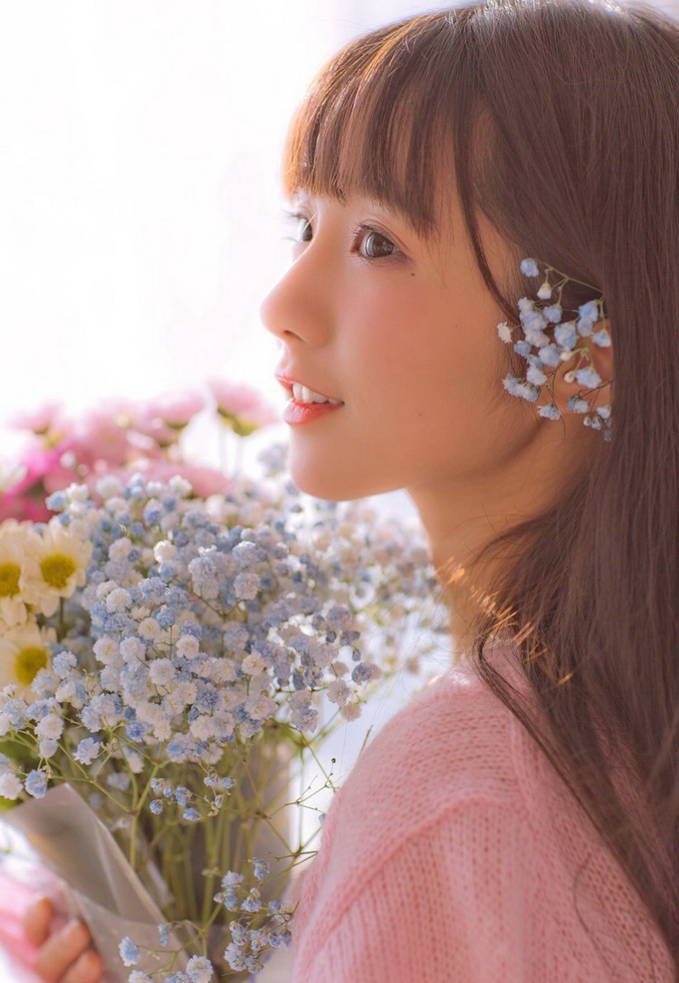 张雅钦短发凌乱手抱花束清纯可人私房照