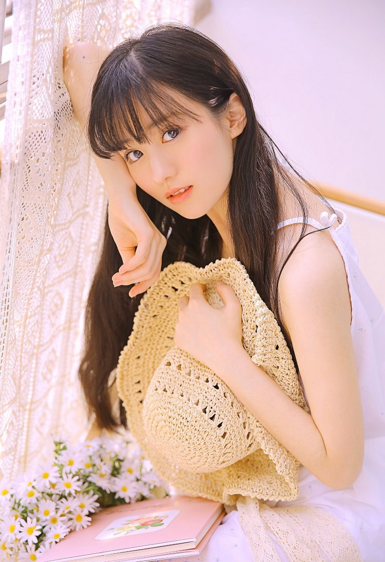 邻家女孩吊带香肩白丝美腿清纯动人写真