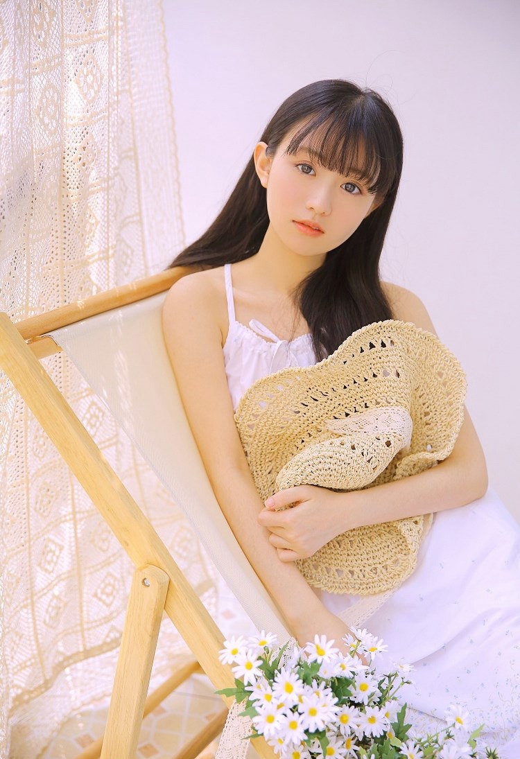 邻家女孩吊带香肩白丝美腿清纯动人写真