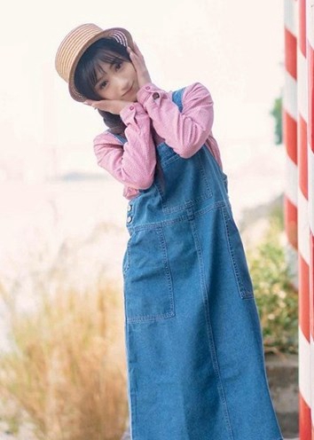 牛仔裤美少女吊带香肩露齿甜笑私房写真