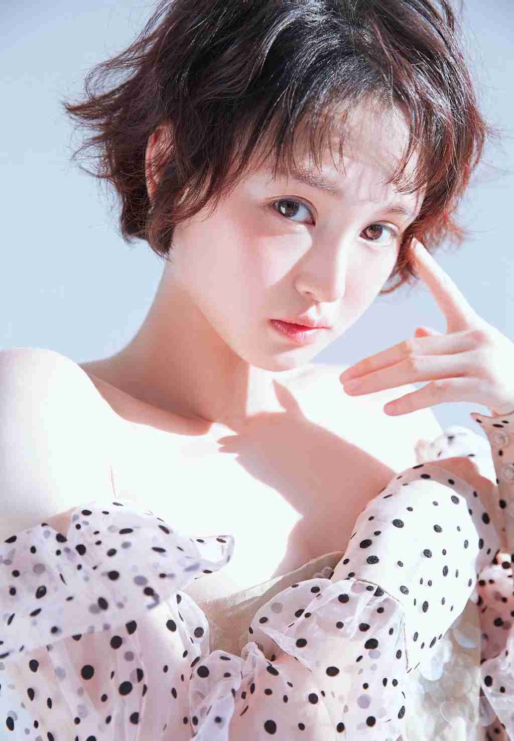 女演员江疏影唇红齿白蕾丝灯笼裙