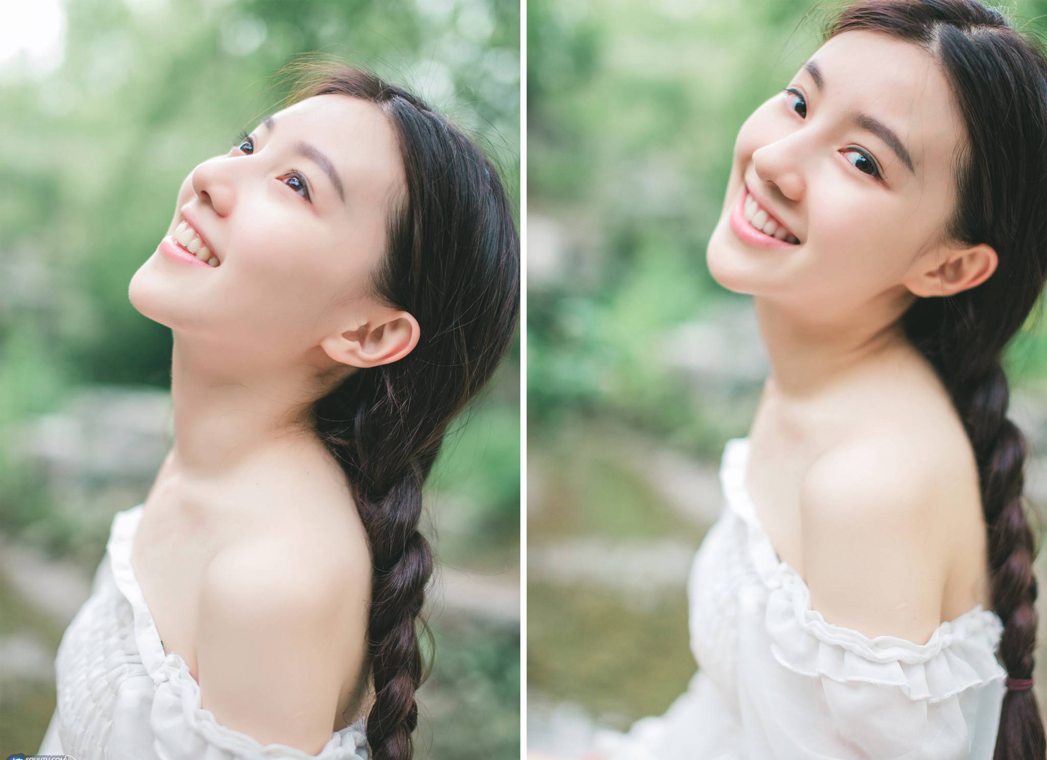 大眼睛美眉白皙大长腿床上慵懒随性写真