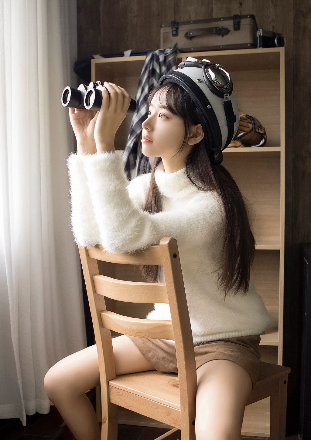 大眼睛美眉白皙大长腿床上慵懒随性写真