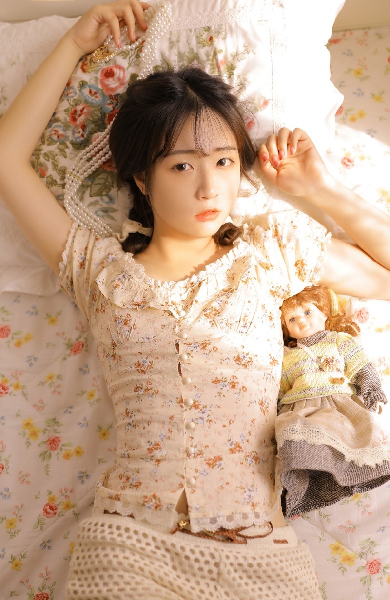 白嫩美女碎花连衣裙光滑牛奶肌私房写真