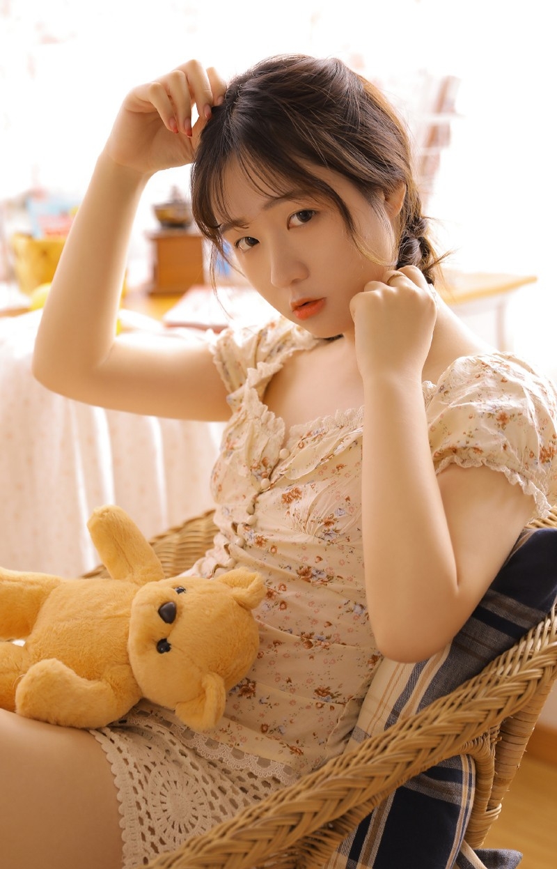 白嫩美女碎花连衣裙光滑牛奶肌私房写真