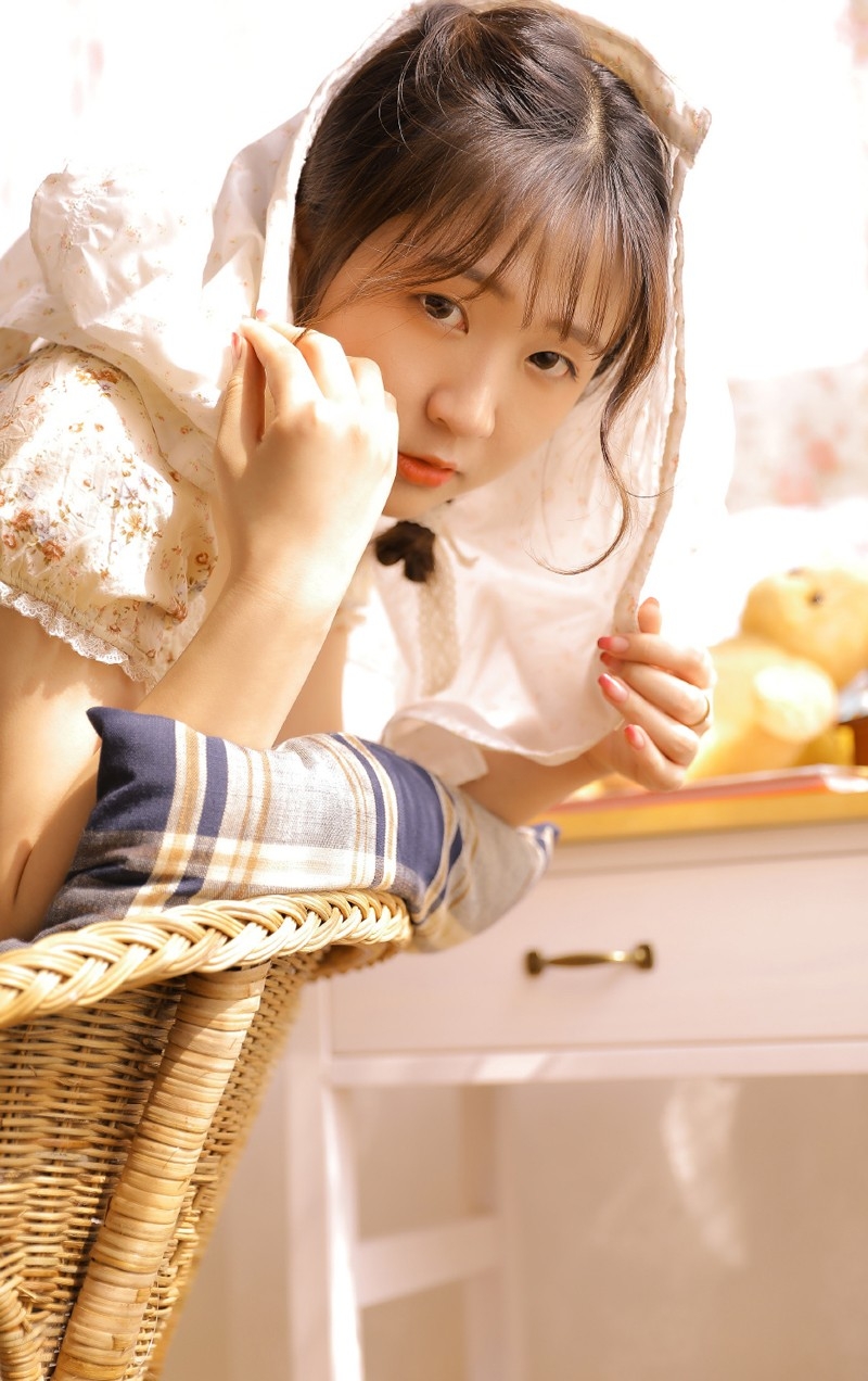 大眼睛美眉白皙大长腿床上慵懒随性写真