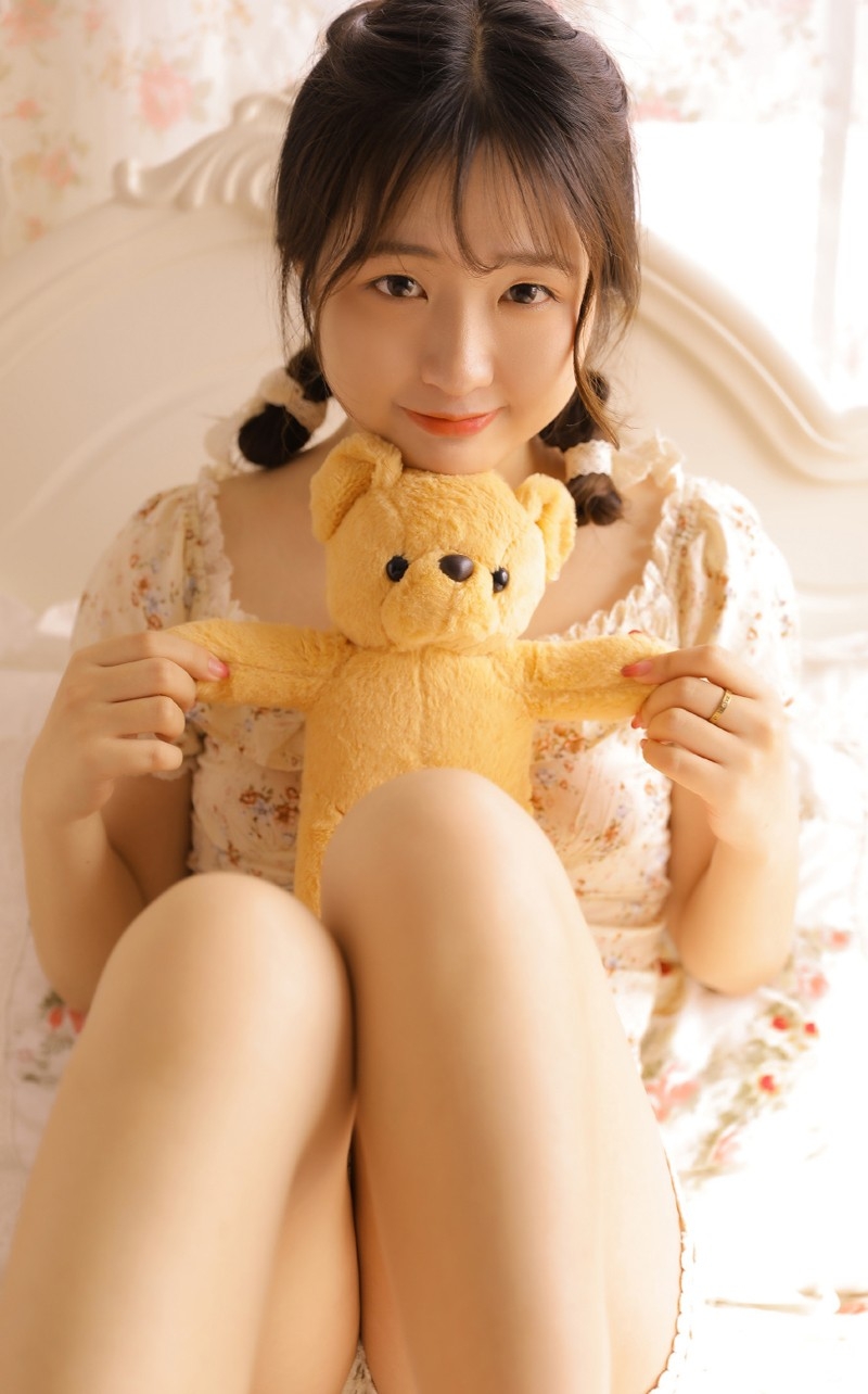 大眼睛美眉白皙大长腿床上慵懒随性写真