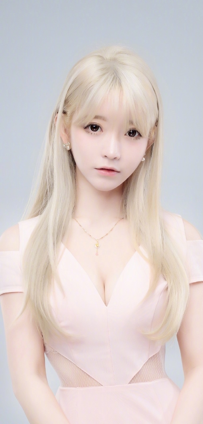 红唇卷发美女低胸开叉长裙性感火辣私拍