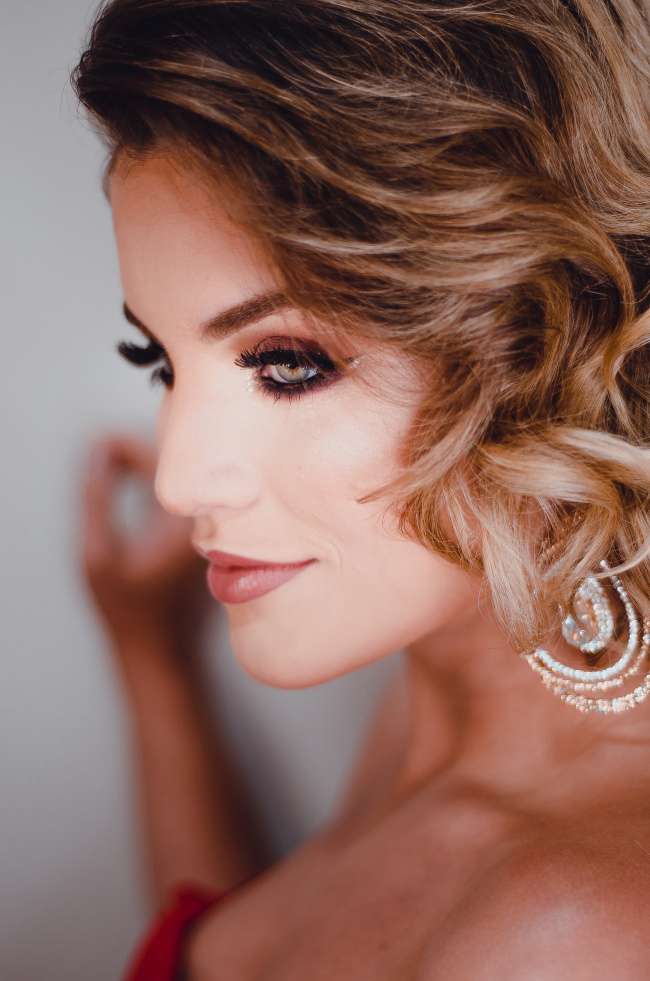 红唇卷发美女御姐低胸吊裙傲人上围性感写真