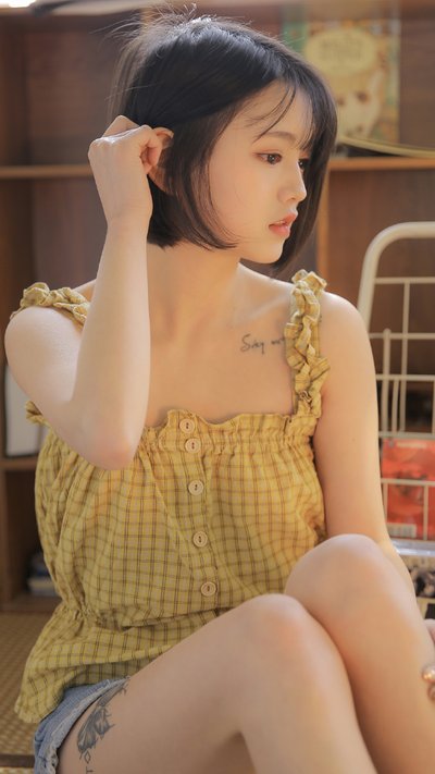 红唇雪肤美女御姐吊带热裤香肩美腿私房写真