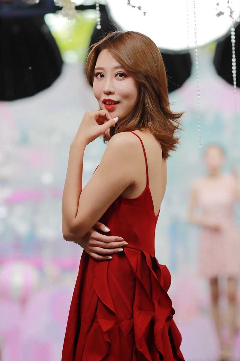 杨超越黑色丝绒裙红唇诱惑妩媚撩人写真照