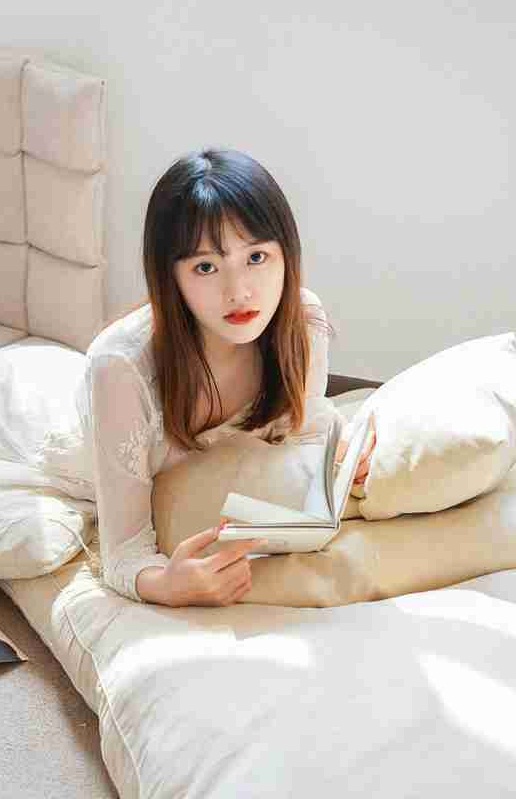 大眼睛美眉白皙大长腿床上慵懒随性写真