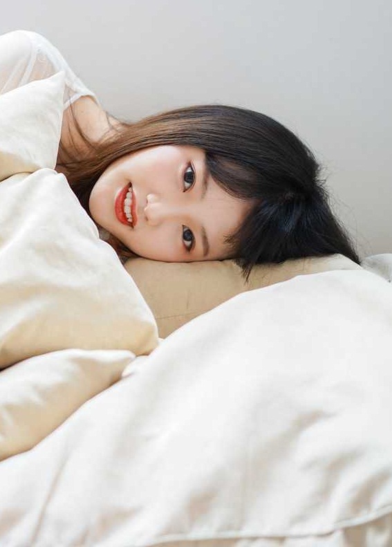 大眼睛美眉白皙大长腿床上慵懒随性写真