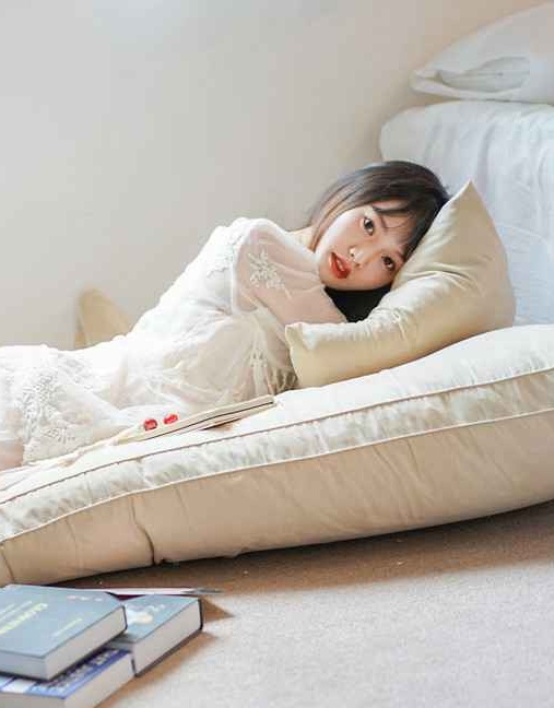 大眼睛美眉白皙大长腿床上慵懒随性写真