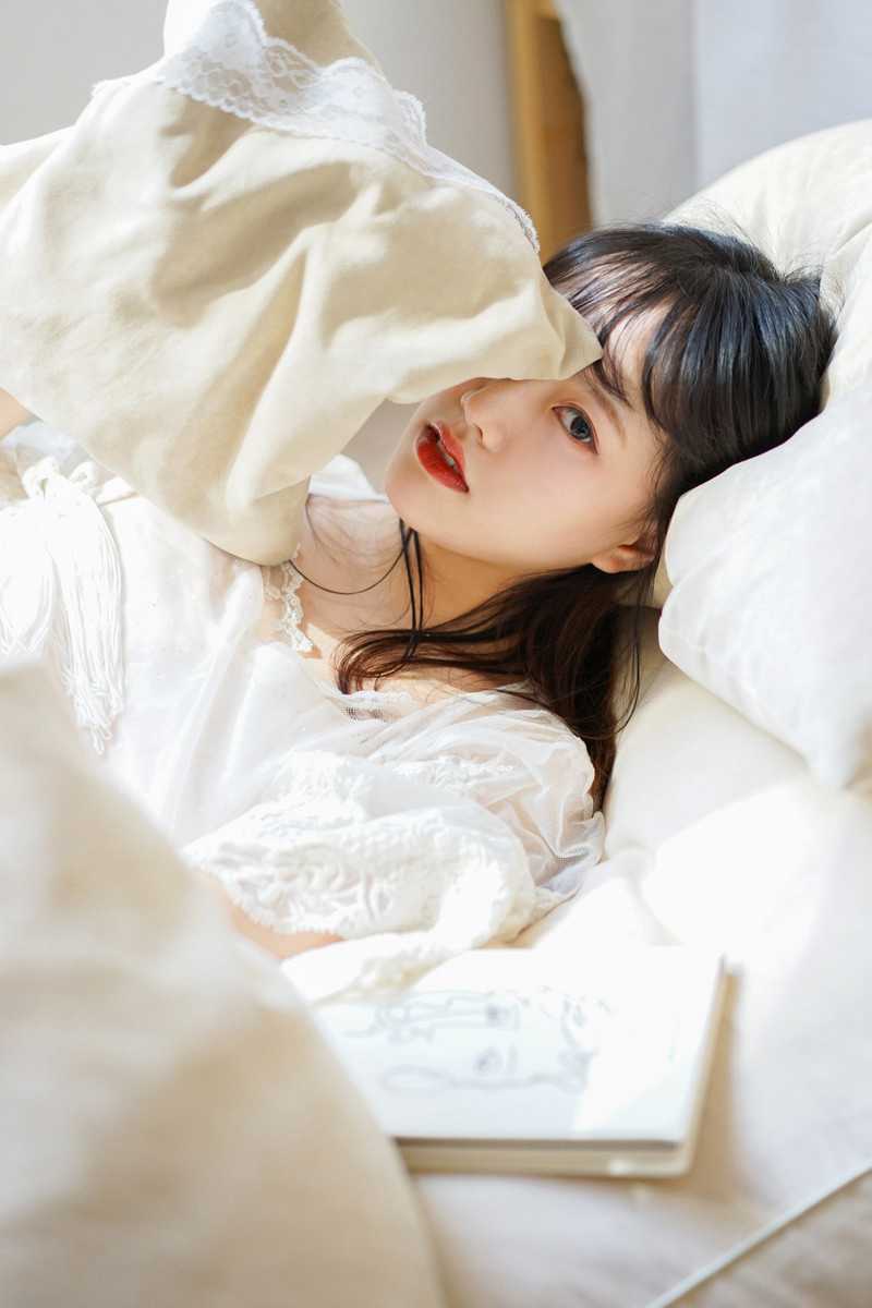 大眼睛美眉白皙大长腿床上慵懒随性写真