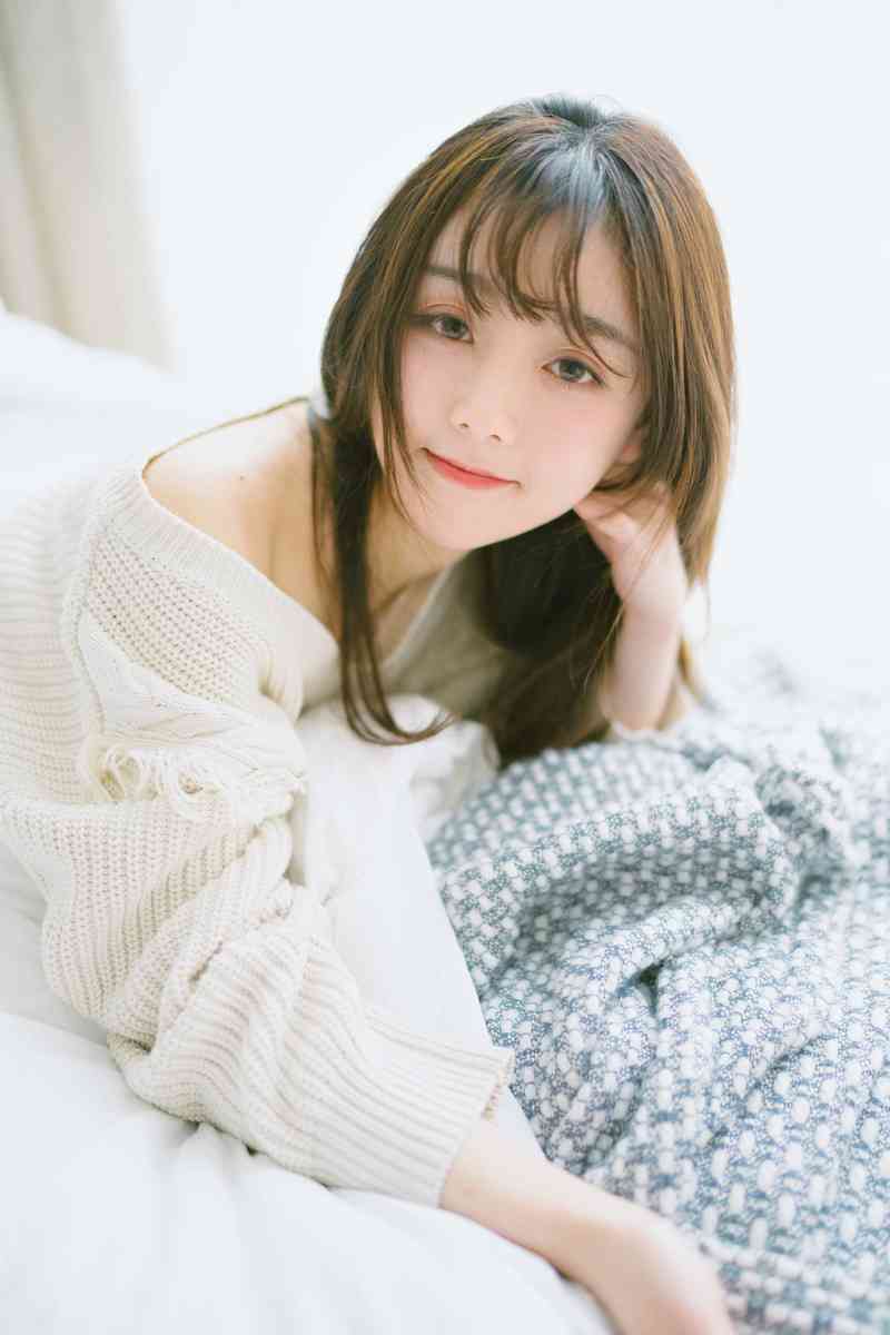 大眼睛美眉白皙大长腿床上慵懒随性写真