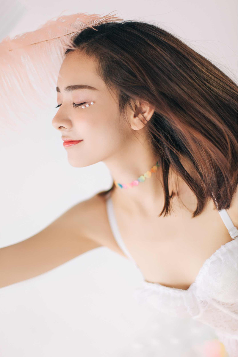 张雅钦短发凌乱手抱花束清纯可人私房照