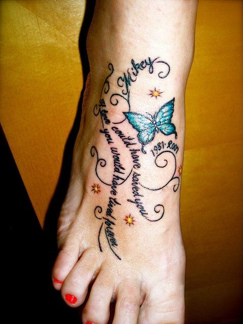 英文与蝴蝶还有一些简单的线条,这些元素在一起构成了一个唯美的纹身图案,请欣赏女生脚上唯美蝴蝶纹身图案。考虑好要一个怎样的纹身了吗?