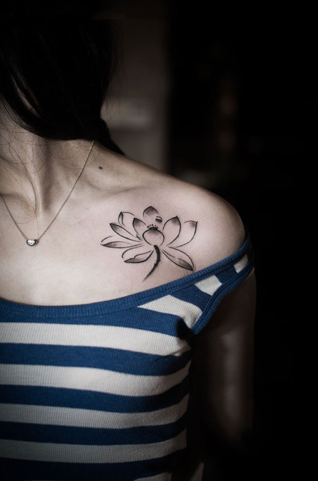 莲花锁骨纹身图片 好看的莲花锁骨纹身超清图片