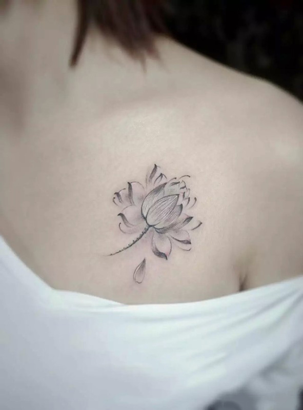莲花锁骨纹身图片 好看的莲花锁骨纹身超清图片