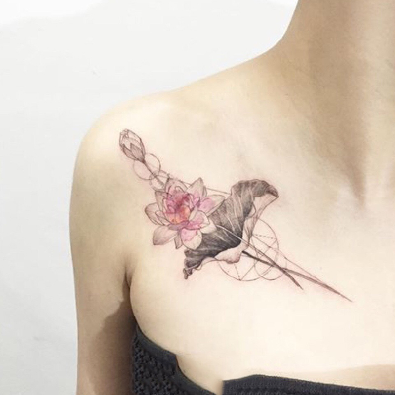 莲花锁骨纹身图片 好看的莲花锁骨纹身超清图片