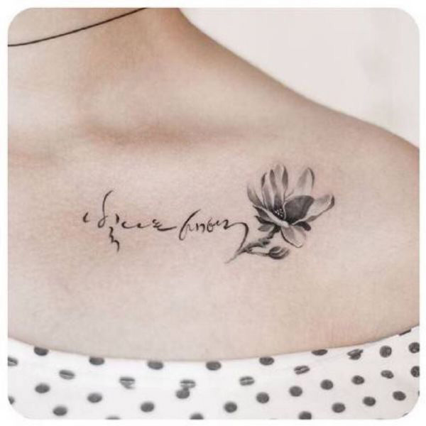 莲花锁骨纹身图片 好看的莲花锁骨纹身超清图片