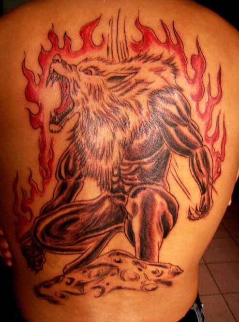 狼纹身满背 满背彩色狼纹身图案