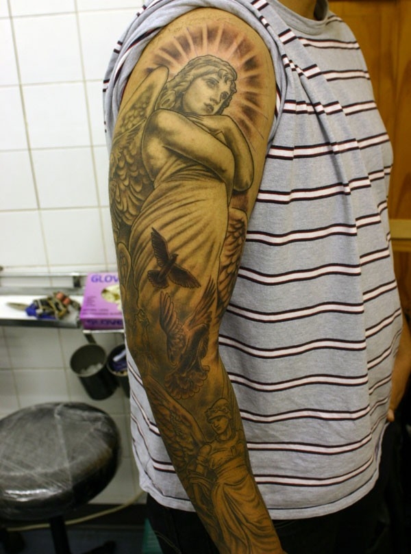 天使花臂纹身 时尚个性天使花臂纹身图案