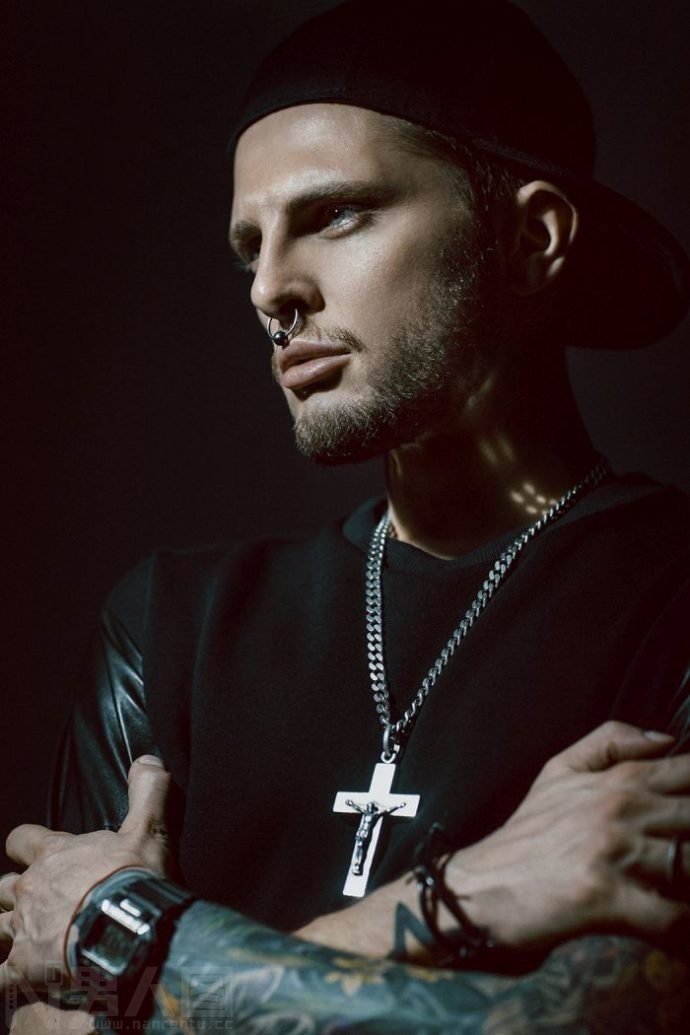 韩国小帅哥身穿个性服饰拍摄户外写真