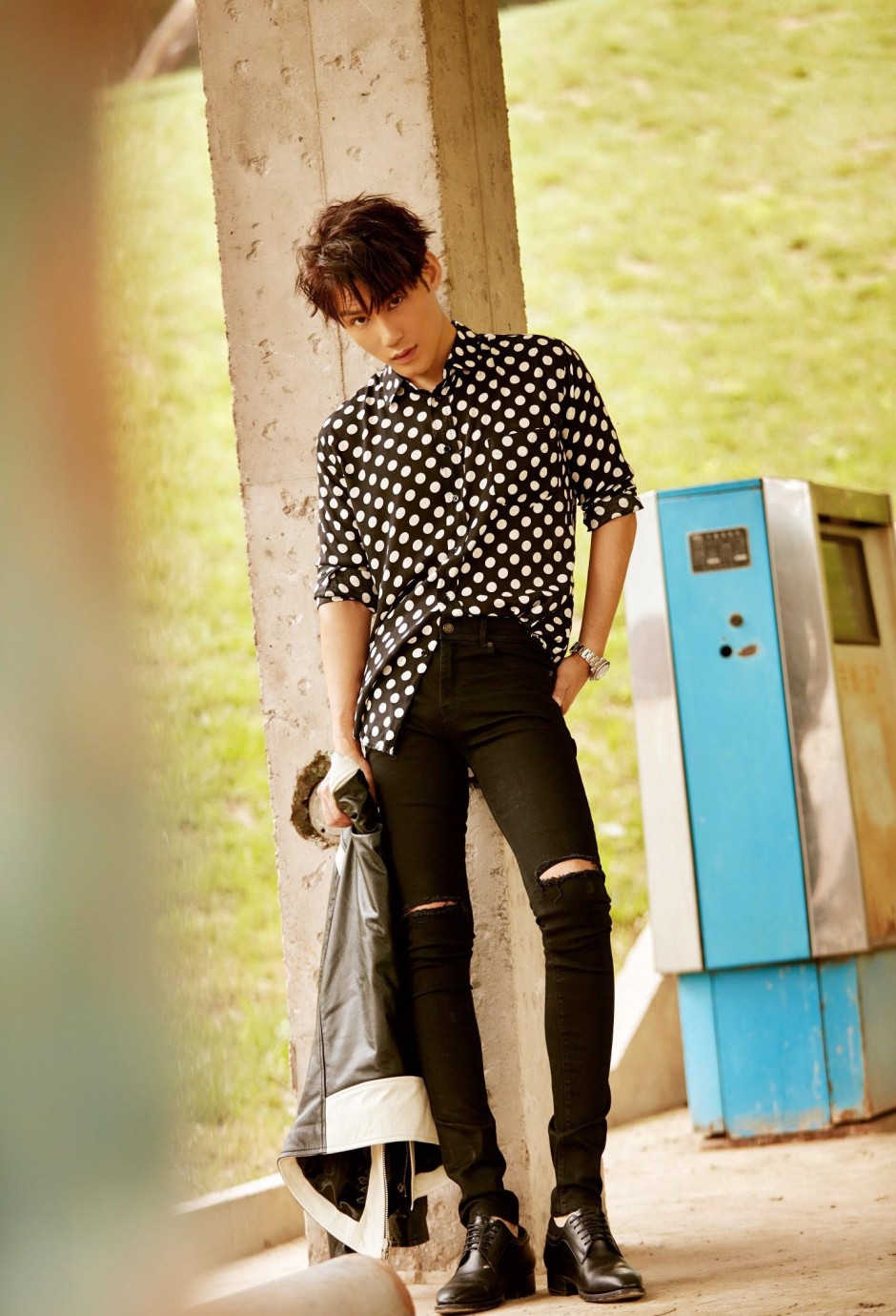 酷盖男孩王一博黑白挑染牛仔装个性写真
