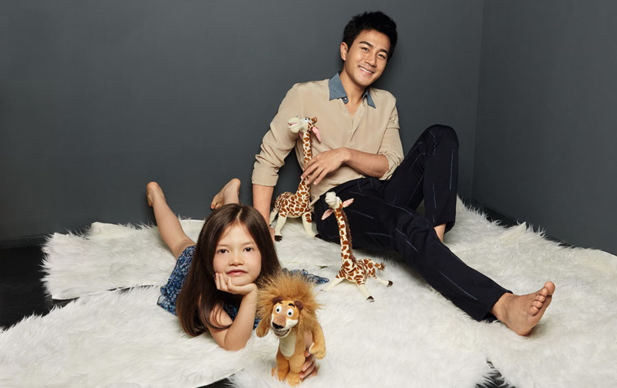 郭京飞绸缎上衣搭配条纹长裤尽显