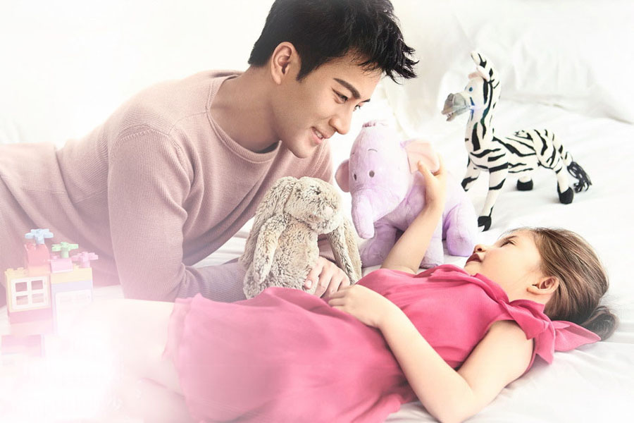 郭京飞绸缎上衣搭配条纹长裤尽显