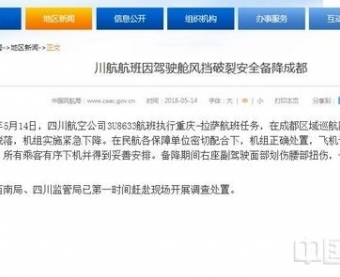 【突发】川航航班因驾驶舱风挡破裂 安全备降成都