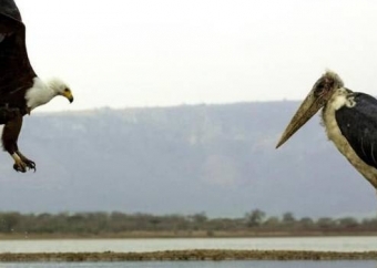 白头海雕和秃鹳争地盘,是猛禽赢还是涉禽赢?