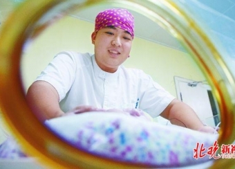 2018年5月12日讯,穿上洁白的护士服,熟练地抱起病床上的孩子,洗澡擦浴,拿起奶瓶喂奶……首都儿科研究所附属儿童医院ICU病房的护士李硕开始了一天的工作。