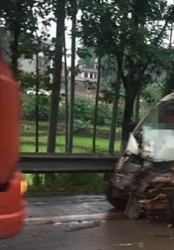 面包车与大货车相撞 车头面目前非