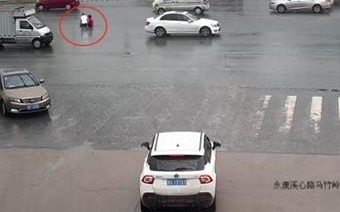 来来往往的车流中,坐着一位红衣阿婆,汽车从她身旁呼啸而过,险象环生。为何这位老人要坐在车流中?