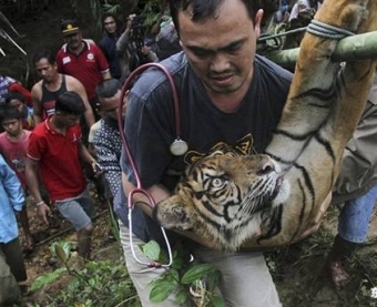 猛兽闯入村庄突袭,村民将其射晕后,连夜送至野生动物园