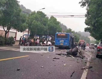 浙江绍兴一公交车与自卸车相撞致1死10余伤