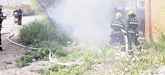 东丽区东城家园小区围墙外 杂物起火引燃树木
