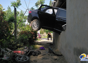 司机转弯太快 轿车骑上围墙RELEASE:2018-05-05 SEE:0