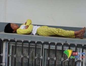 “熊孩子”赖床遭训斥 赌气睡到 5 楼窗外防护网顶上