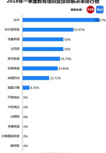 2018年第一季度,聚投诉共接到针对教育培训行业的有效投诉1105件,其中403件获反馈解决,投诉解决率为36.5%,行业整体解决率偏低。教育培训行业长期存在着两大问题:一是招转培已成为该行业内惯用的不当营销手段。相关机构往往还与网贷机构合作,针对经济能力