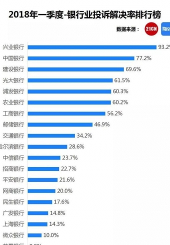 2018年一季度,21CN聚投诉累计受理全国金融消费者关于银行业的投诉1801件,其中1013件获得解决,解决率56.2%。投诉量≥5件的商家,纳入本次投诉排行榜。上榜商家按投诉量排序为:工商银行、建设银行、农业银行、中国银行、光大银行、交通银行、浦发银行、平安