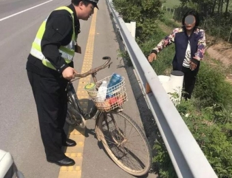 4月29日,安阳高速交警支队三大队巡逻民警刘刚、带领辅警张鹏、郑浩巡逻至安南高速76公里处发现一辆自行车向自己逆行而来,情况十分危险。经询问得知,该女子家住内黄,觉得高速好走就凑热闹上高速走走。民警告诉该女子,高速公路是全封闭的道路不允许非机动
